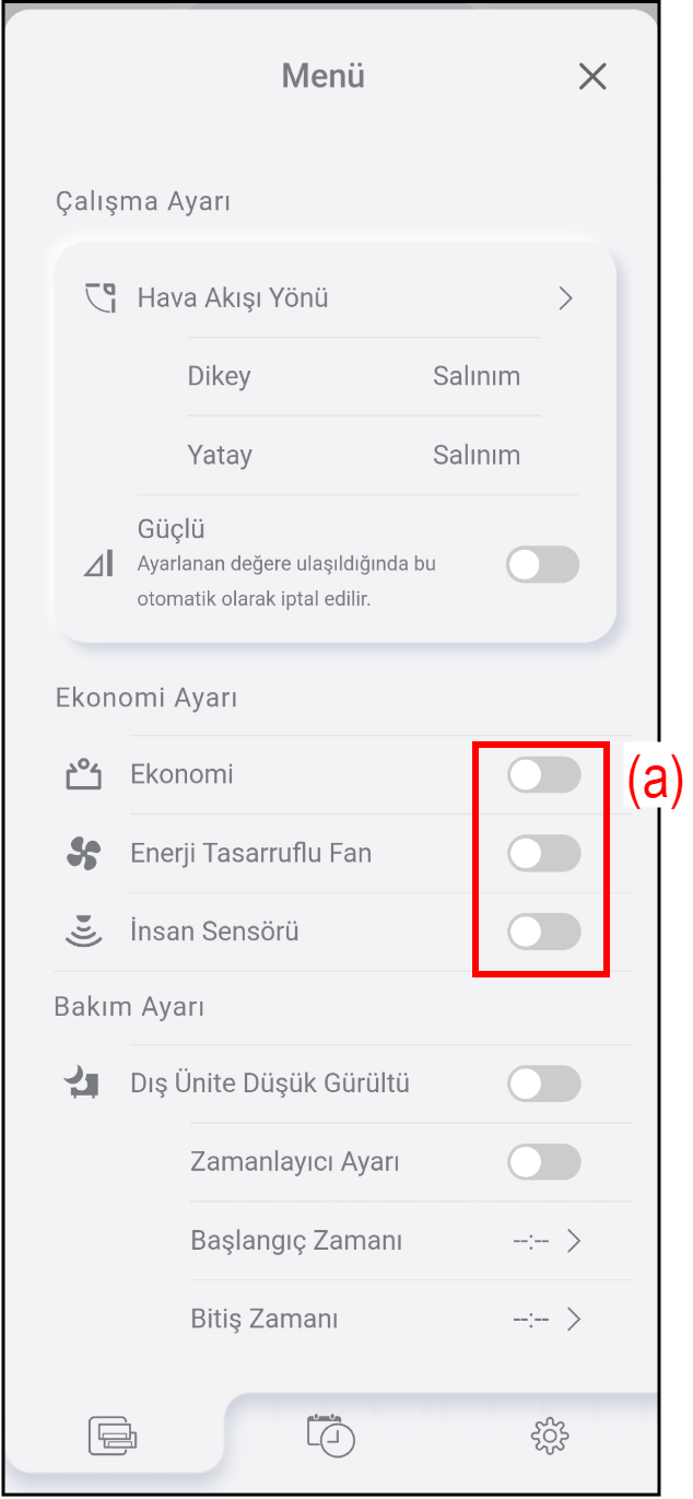 Her bir işlemi etkinleştirmek/devre dışı bırakmak için (a) düğmesine basın.