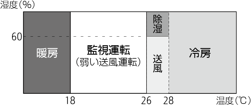 運転停止中に、エアコンがお部屋の状況や外気温を判断し、自動で運転を行います。