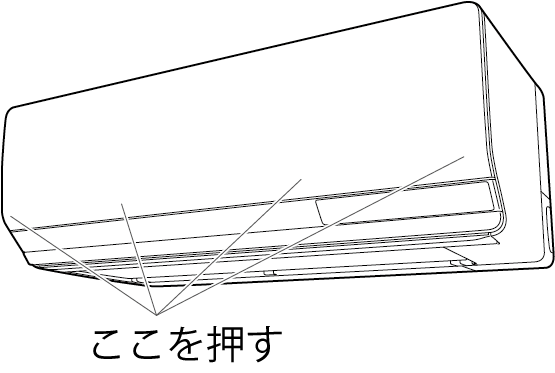 ② 吸込グリル下部の両端と中央(4 ヵ所)を押す。