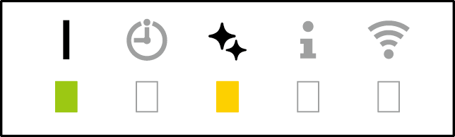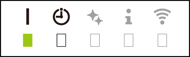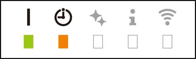 運転ランプ(緑)がおそい点滅をし(約3秒に1回)、タイマーランプ(橙)とクリーンランプ(黄)が点灯している | ||