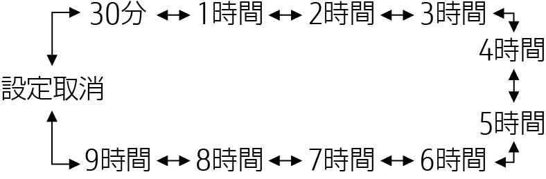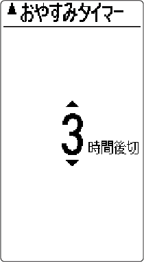 HOME 基本の使いかた おやすみタイマー 寝るときにタイマーを使うお願いあらかじめ、リモコンの時刻設定が合っていることを確認してください。(→ 時刻設定)詳しい機能の働きを知りたい方はこちら操作のしかた を押すメニュー画面が表示されます。 で を選び を押す で「おやすみタイマー」を選び を押すで時間を設定する停止するまでの時間を設定します。例)今から3 時間後に運転を停止する時間を合わせて少し待つと信号が送信され、本体のタイマーランプ(橙)が点灯して、タイマーが設定されます。を押すごとに次のように時間が変わります。時間を合わせて少し待つと信号が送信され、本体のタイマーランプ(橙)が点灯して、タイマーが設定されます。▶本体表示部詳しい機能の働きタイマー設定中は次の予約時刻を表示し、現在時刻は表示しません。停止中におやすみタイマーを設定すると、運転を開始します。おやすみタイマーが設定されているときに を押すと、タイマーが取り消されます。おやすみタイマーでは、おやすみ中、冷やしすぎや暖めすぎのないように時間の経過とともにお部屋の温度をコントロールします。設定した時間がたつとエアコンの運転を停止します。冷房運転のときおやすみタイマーを設定すると、30 分ごとに設定温度が0.5℃ずつ上がります。合計2℃上がった時点で、その温度を保ち、設定した時間後に自動的に運転を停止します。暖房運転のときおやすみタイマーを設定すると、30 分ごとに設定温度が1℃ずつ下がります。合計4℃下がった時点で、その温度を保ち、設定した時間後に自動的に運転を停止します。■設定したおやすみタイマーを取り消すとき操作のしかた を押すメニュー画面が表示されます。 で を選び を押す で「おやすみタイマー」を選び を押すで「設定取消」を選び、少し待つ信号が送信され、本体のタイマーランプ(橙)が消灯して、タイマーが取り消されます。