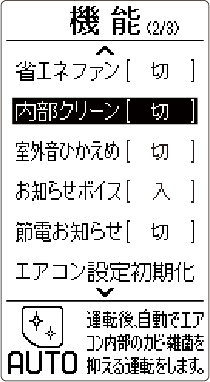 冷房または除湿運転をしたあと、室内機に水分が残った状態のままだとカビ菌や細菌の繁殖の原因になります。内部クリーンは、冷房・除湿運転停止後に自動で送風運転を行い、室内機内部(熱交換器、送風ファン、送風路)を乾燥させて、カビ菌や細菌を繁殖しにくくします。