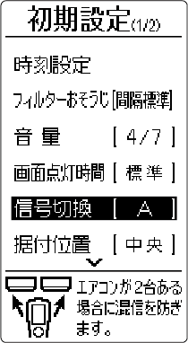 当社エアコンを2台同じ部屋に据え付けたときなど、信号設定を切り換えて、混信を防ぐことができます。