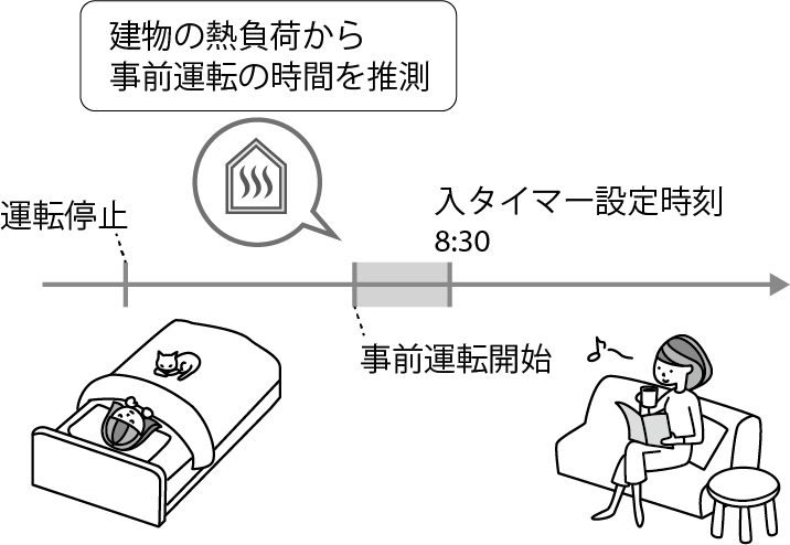 AIが設定温度・風量・風向を自動で設定し、おすすめの運転を行います。