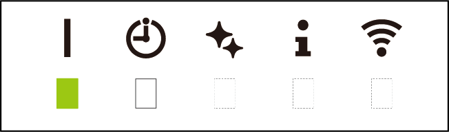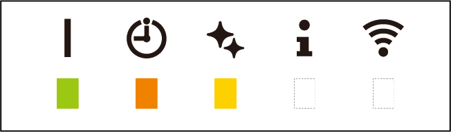運転ランプ(緑)がおそい点滅をし(約3秒に1回)、タイマーランプ(橙)とクリーンランプ(黄)が点灯している | ||