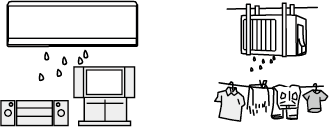 窓や戸を開けたままにするなど、高湿(80%以上)で長時間運転しない。 室内機に露が付き、水滴が落ちて他の電気機器や家財などを濡らし、汚損や故障の原因