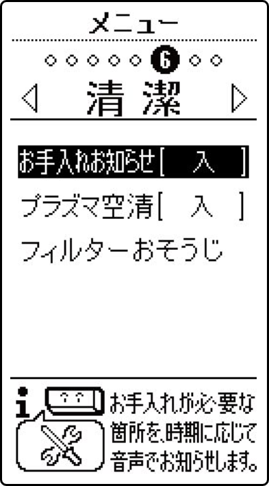 エアコンのお手入れが必要になると、お手入れが必要な箇所をエアコンからの音声案内でお知らせします。