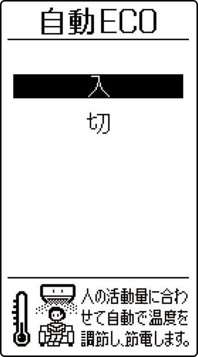 ▶ 自動 ECO が働く設定は、一度設定すると、「切」に設定するまで有効です。