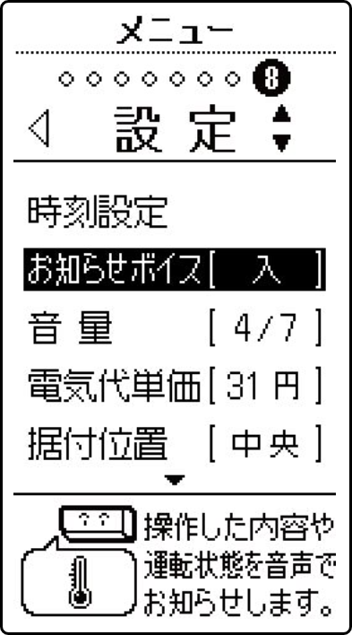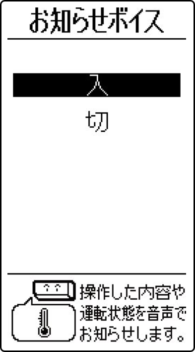 リモコンで設定した内容や運転状態を音声でお知らせする機能です。