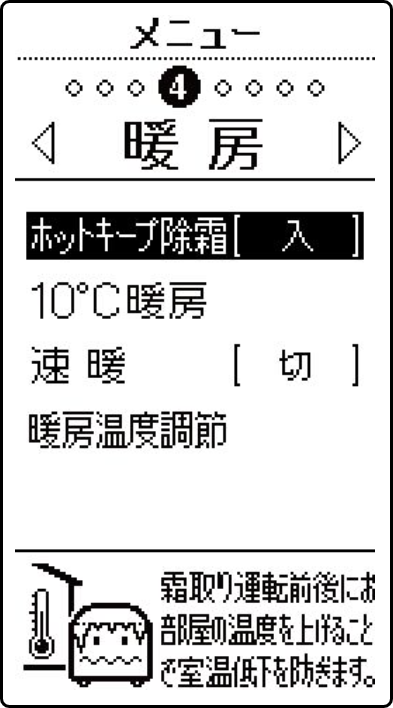 弱い暖房運転をすることで、人がいない間にお部屋の温度が下がりすぎるのを抑え、帰宅後や起床時の暖房の立ち上がりを早めます。