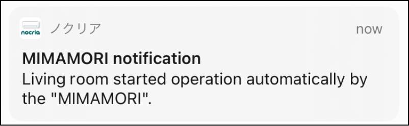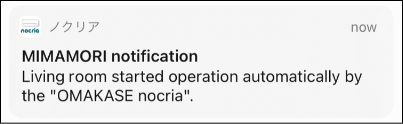 When the air conditioner is set to MIMAMORI or OMAKASE nocria, a push notification is sent when there is a change to the room temperature or humidity or when a function has been operated.