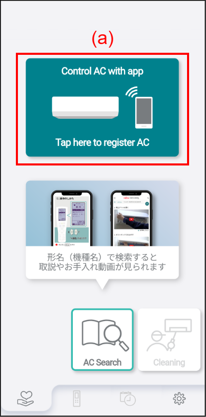 When (a) is tapped, air conditioner registration starts.