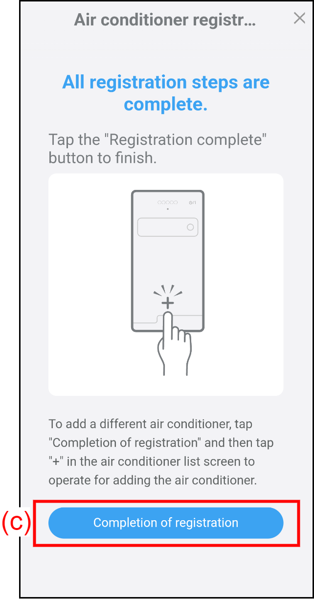 Tap [Completion of registration] (c) to complete air conditioner registration.