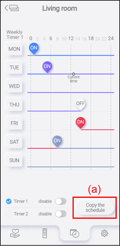 - Tap [Copy the schedule] (a) to begin copying the timer settings.