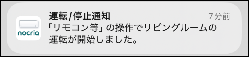エアコンのリモコンや他のユーザーによる運転/停止操作をプッシュ通知でお知らせします。