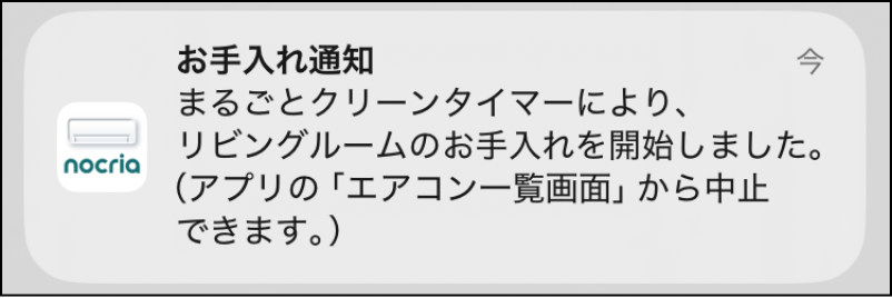 エアコンの「まるごとクリーンタイマー」「カビ抑制タイマー」を設定すると、機能が動作したことをプッシュ通知でお知らせします。