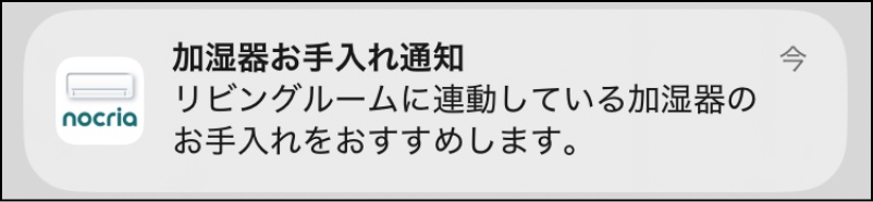 エアコンと連動してる加湿器に給水やお手入れが必要になると、プッシュ通知でお知らせします。