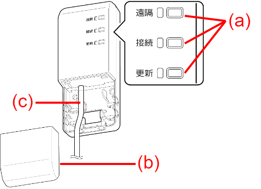- 無線LANアダプターにテープで貼られています。(無線LANアダプターをエアコン本体に差し込む前にはがしてください。)