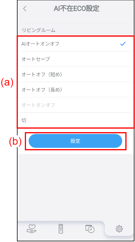 (a) をタップしてAI不在ECO設定画面を表示します。