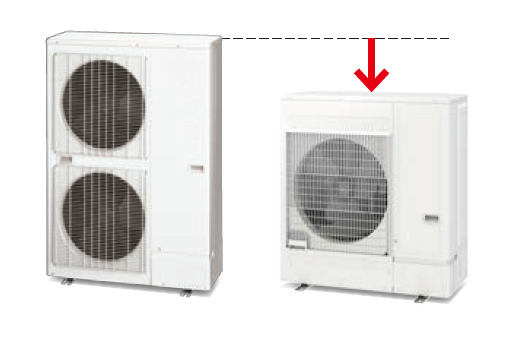 Die Außeneinheit dieser Linie ist 22,7 % kürzer* als Außeneinheiten mit Doppellüfter. Die flache Bauweise ermöglicht Installationen bei geringer Deckenhöhe.