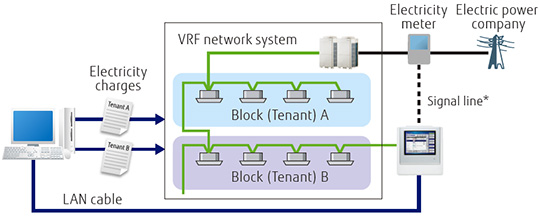 Die Energiekosten können berechnet und jedem Abrechnungsnutzer im Verhältnis zur für die Klimatisierung verbrauchten Energiemenge zugewiesen werden.