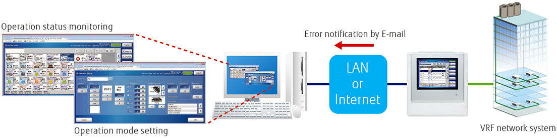 - Die Klimaanlagen können per PC über LAN überwacht und gesteuert werden.