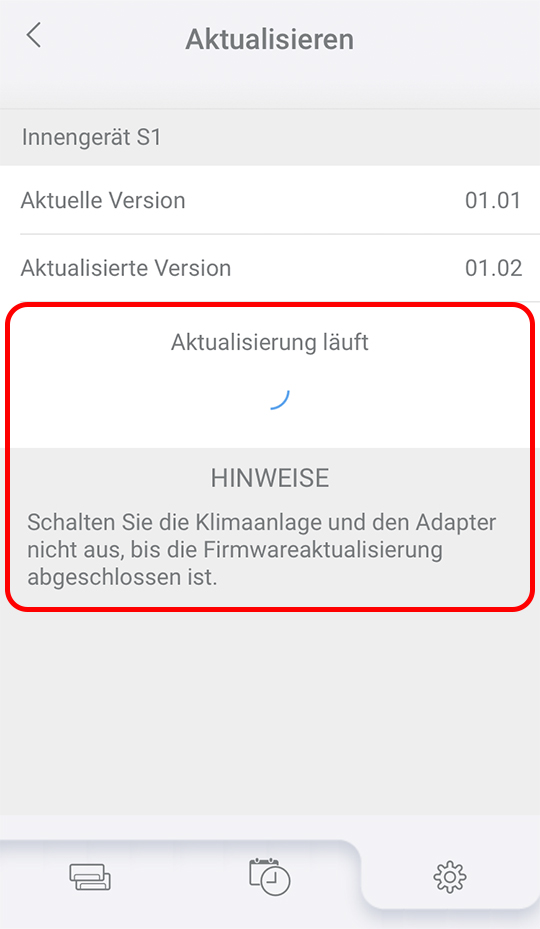 Schalten Sie die Klimaanlage nicht aus, während das Update der Firmware durchgeführt wird.