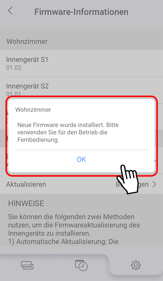 - Das Update gilt nicht für die Firmware von Innengerät S2.