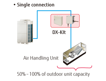 - Ühendatava DX-komplekti süsteemide võimsusvahemik: 50 kuni 100% välisseadme võimsusest