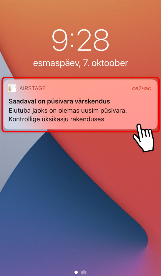 Mobiilirakenduse AIRSTAGE püsivarauuendus tõuketeatiste väikese paranduse jaoks