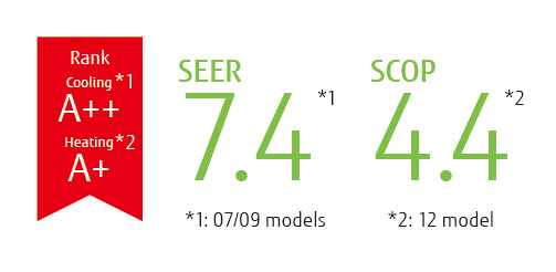 Se consigue una eficiencia energética excepcional mediante un intercambiador de calor lambda de alta eficiencia, un ventilador de flujo transversal grande y refrigerante R32.