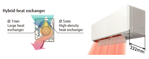 El diseño compacto y elegante de esta unidad interior se consigue gracias al uso de un intercambiador de calor multitrayecto de alta densidad y un ventilador de alta eficiencia.
