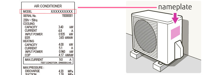 El nombre del modelo figura en la placa de características situada en el lateral de la unidad exterior.