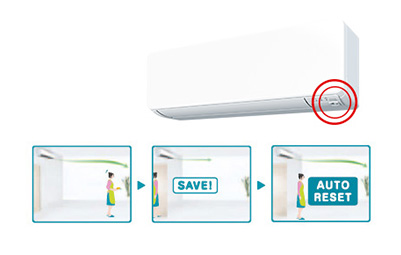 The human sensor monitors the movement of a person in a room. When it detects that a person has left the room, it switches the air conditioner to low-capacity operation. When it detects the presence of a person again, it switches the unit back to the previous operation mode.