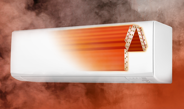 Heats the heat exchanger (aluminum fins) inside the air conditioner to over 55°C along with any accumulated water to quickly and effectively clean it. It is also effective against mold that has adhered to the unit.*