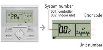 - Vikaantuneen sisäyksikön osoite, virhekoodi ja virheiden määrä