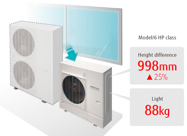 Tämän sarjan ulkoyksiköt ovat kooltaan paljon kompaktimpia kuin teholtaan samanlaiset perinteiset ulkoyksiköt. Ne voidaan asentaa parvekkeelle kaiteen alapuolelle. Laitteiden korkeus on alle 1 m, joten ne voi asentaa ahtaisiin tiloihin, kuten ikkunan alle.