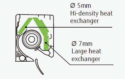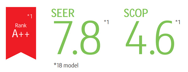 Grâce à son grand échangeur de chaleur hybride hautes performances, l'unité affiche les meilleures valeurs SEER et SCOP de sa catégorie.