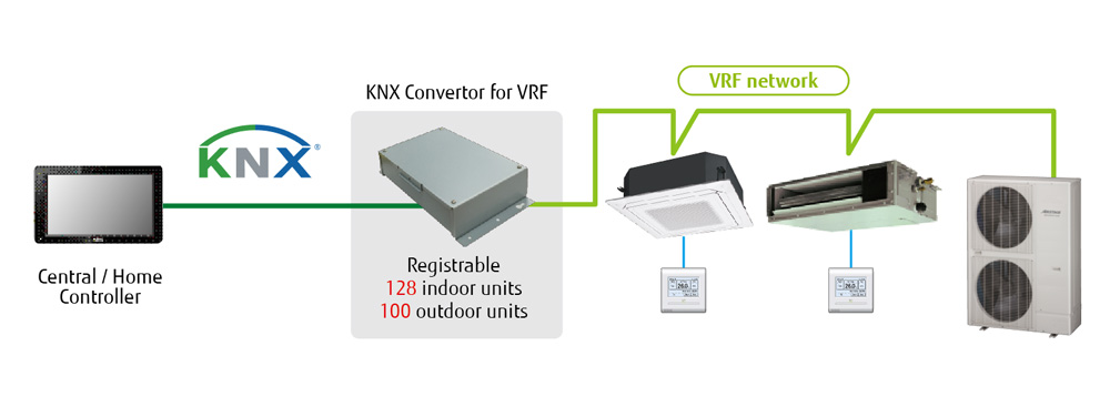 - Le convertisseur KNX permet de connecter un boîtier de commande central ou domestique et un système VRF Fujitsu General.