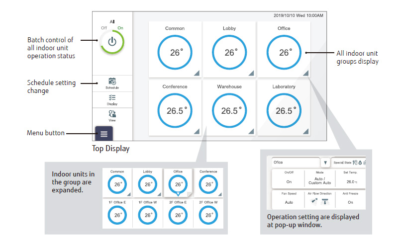 - Surveillance et contrôle individuels de 100 unités intérieures maximum