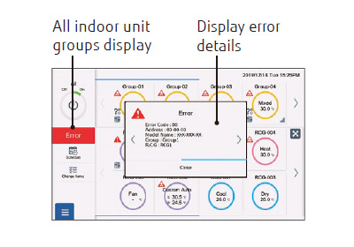 La télécommande centrale permet de surveiller et de commander les climatiseurs d'un occupant en continu et de n'importe où.