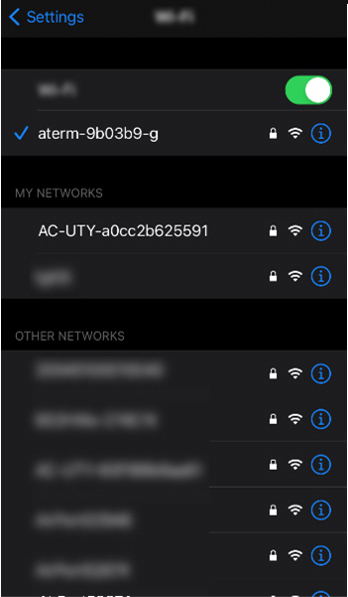 Lorsque vous commencez à connecter manuellement un adaptateur WLAN à l'aide de votre smartphone fonctionnant sous iOS 14 ou d'une tablette fonctionnant sous iPadOS 14, un message apparaît sur l'écran de votre smartphone ou de la tablette (voir ci-dessous).