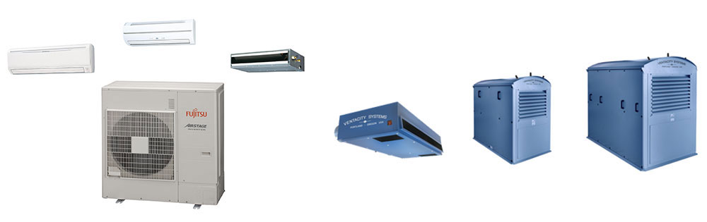Fujitsu General multi air conditioning system for buildings (VRF) (left) and Ventacity heat recovery ventilator