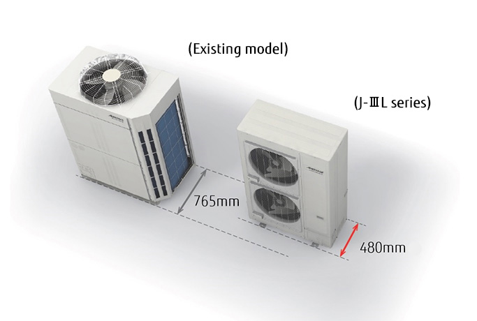 Industry’s smallest compact outdoor unit: AIRSTAGE J-III L series (Photo: Right)