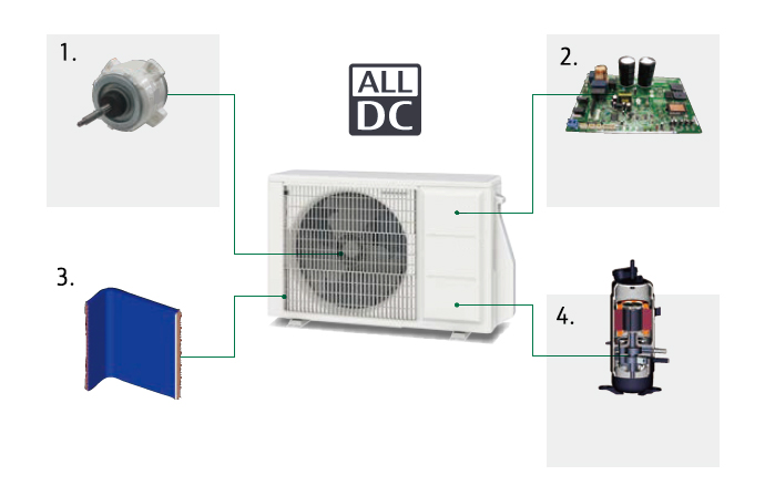 Όλα τα μοντέλα έχουν υψηλή ενεργειακή απόδοση κλάσης A+++ για την ψύξη και A++ για τη θέρμανση, καθώς χρησιμοποιούν διπλό περιστροφικό συμπιεστή DC υψηλής απόδοσης.