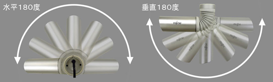- カメラ本体部は、水平・垂直方向に180°可変角度をもつ全方位撮影機構により、あらゆる方角の撮影が可能