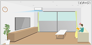 従来のエアコンでは風を部屋の隅々まで届けることが困難だった二間続きの部屋や吹き抜けのある部屋などでも「デュアルブラスター」による気流の効果で、より上質な快適性を実現します。