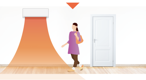 通常のエアコンにはない「10℃暖房」機能を搭載しました。外出時や就寝時、ごく弱い暖房運転を続けることで室温の下がり過ぎを抑え、帰宅時などに通常の暖房運転を開始すると素早く温風を吹き出します。