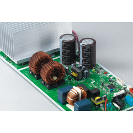 「ノクリア」GNシリーズは、最大電圧と最小電圧の出力範囲の幅を広げるインターリーブPAMインバーターと大容量・高性能コンプレッサーなどの制御技術により、低外気温でも高い暖房能力※1 を発揮します。