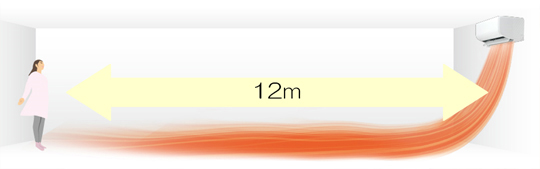 4.幅68.6㎝のコンパクト室内機でも12m先まで風が届くパワフル設計